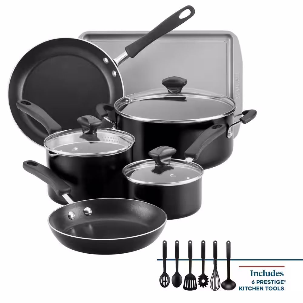 Farberware Cookstart 15-Piece Aluminum Nonstick Cookware Set in Black