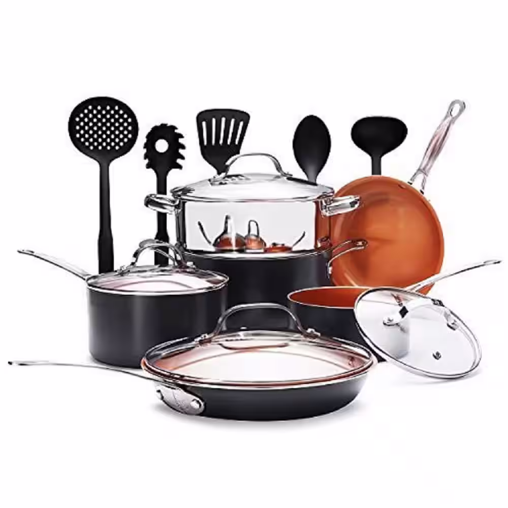 Gotham Steel 15-Piece Aluminum Ti-Ceramic Nonstick Cookware Set with Lids and Utensils