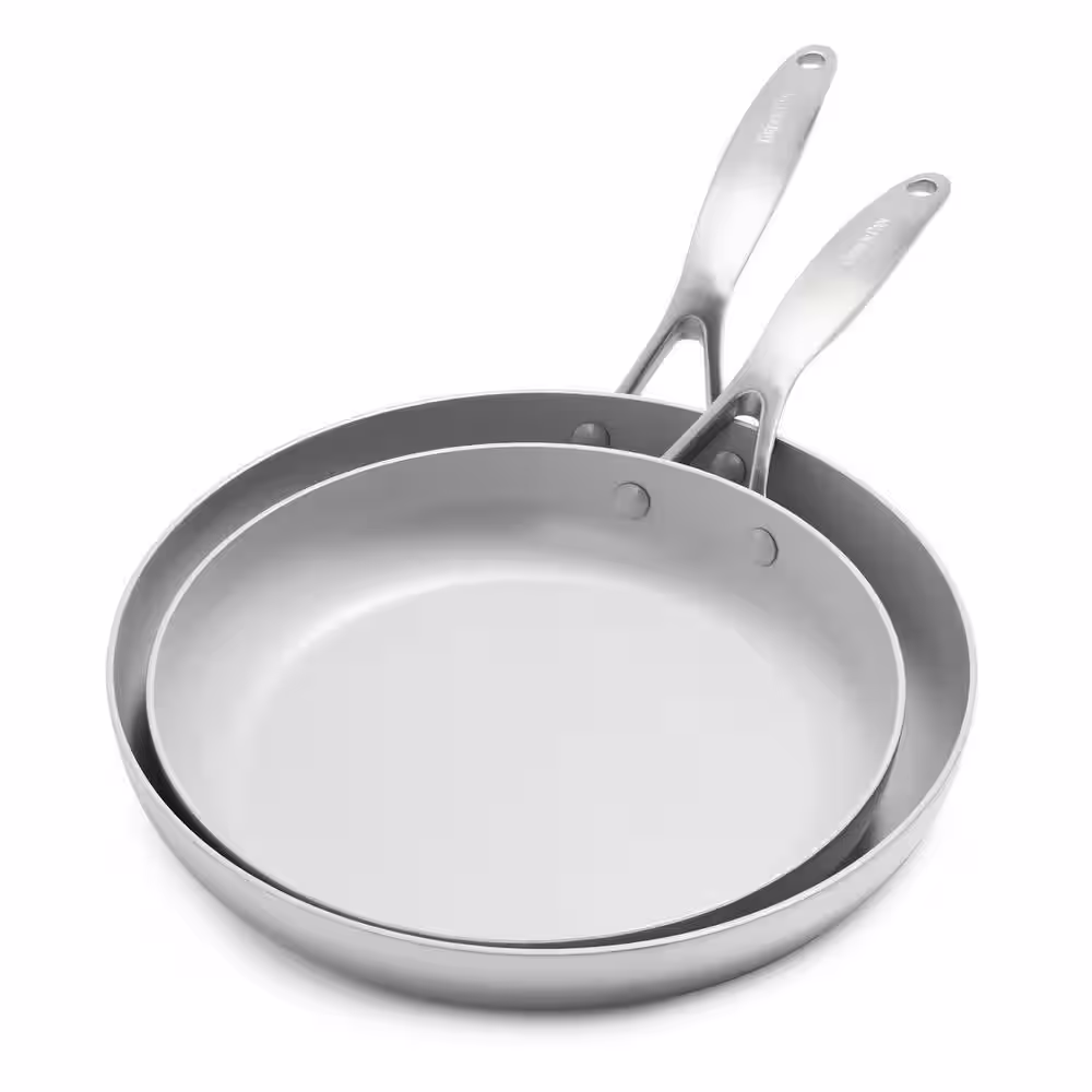GreenPan Venice Pro Tri-Ply Stainless Steel Healthy Ceramic Nonstick 10" and 12" Frying Pan Skillet Set