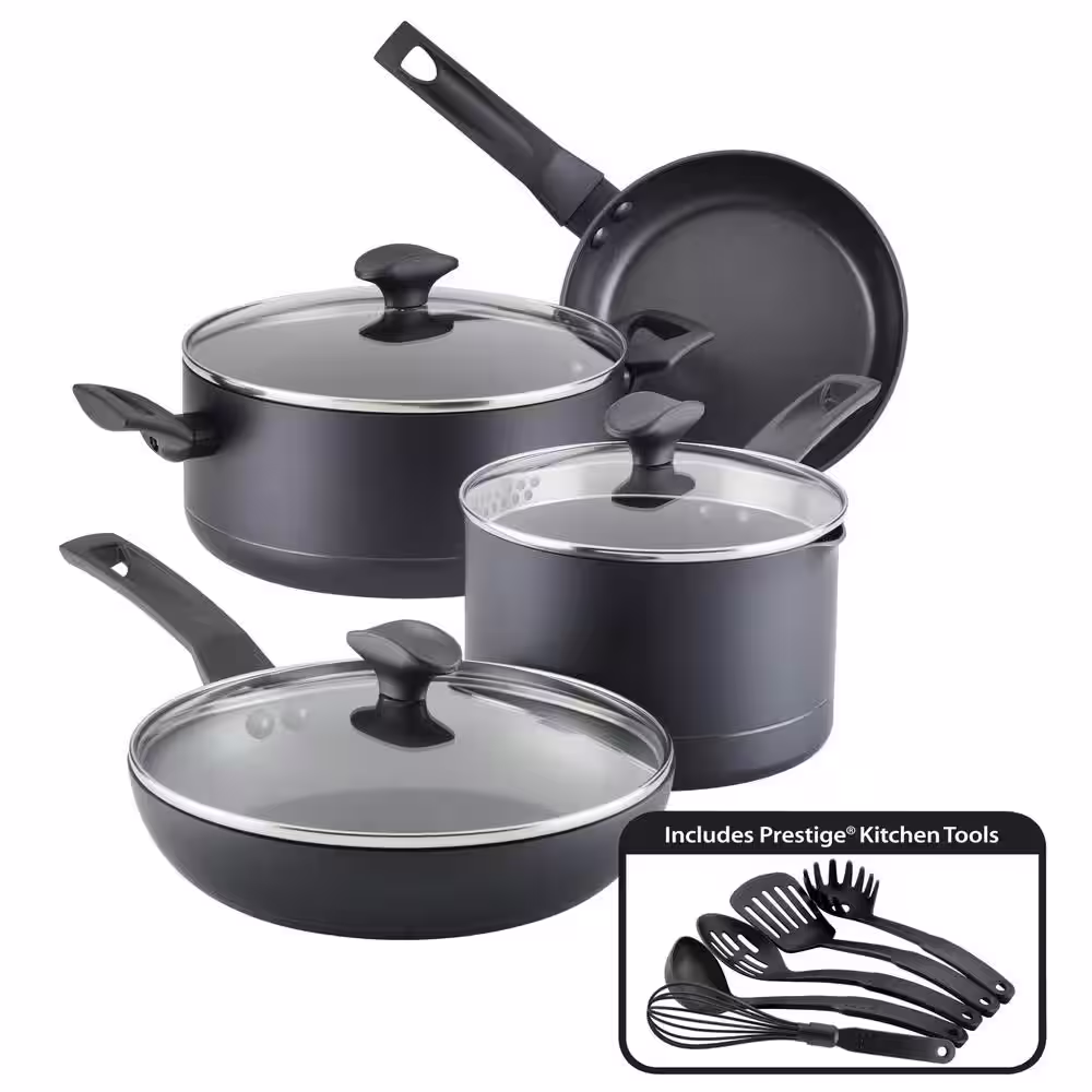 Farberware 12-Piece Power Base Aluminum Nonstick Cookware Pots and Pan Set in Matte Black