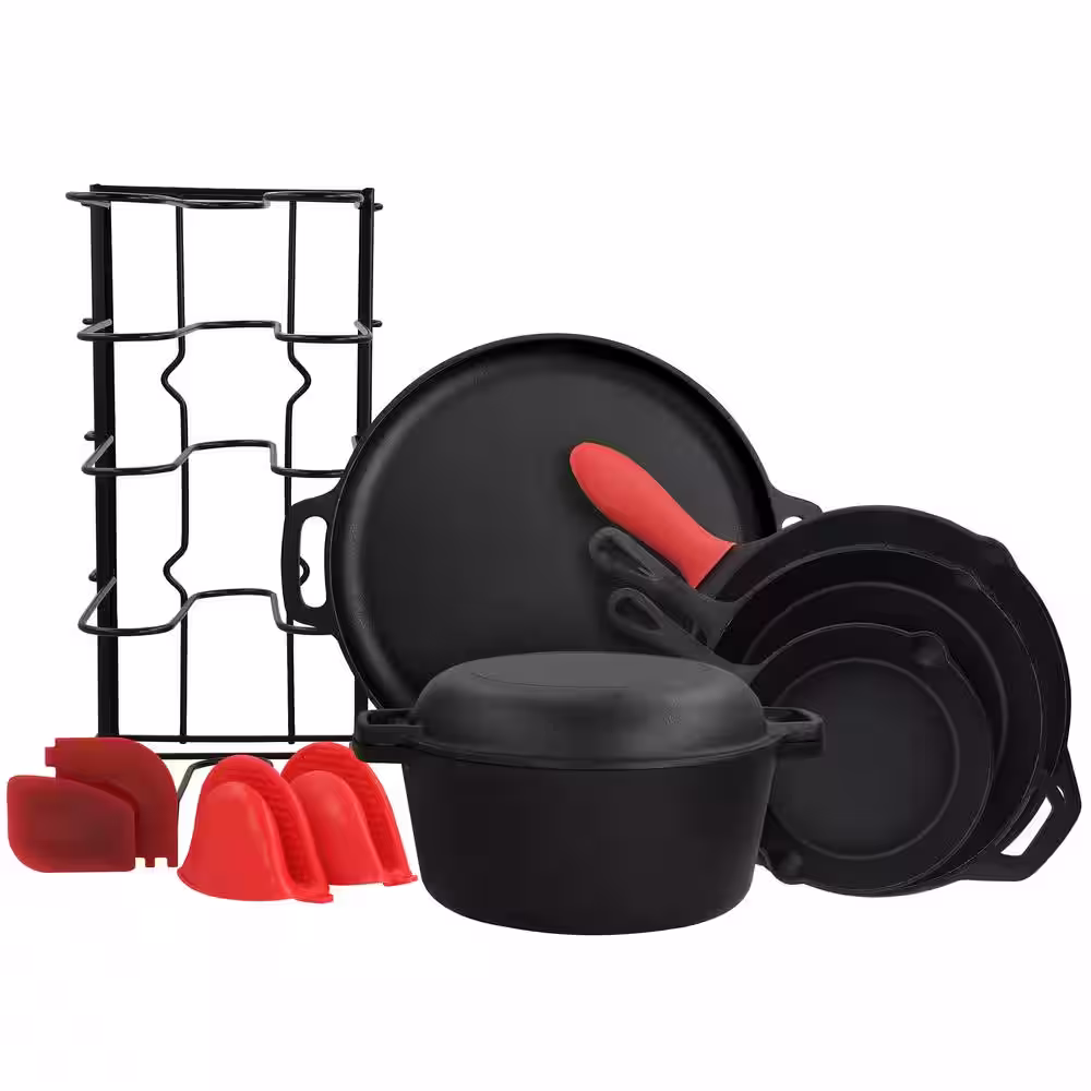 MegaChef 12-Piece Round Pre Seasoned Cast Iron Cookware Set