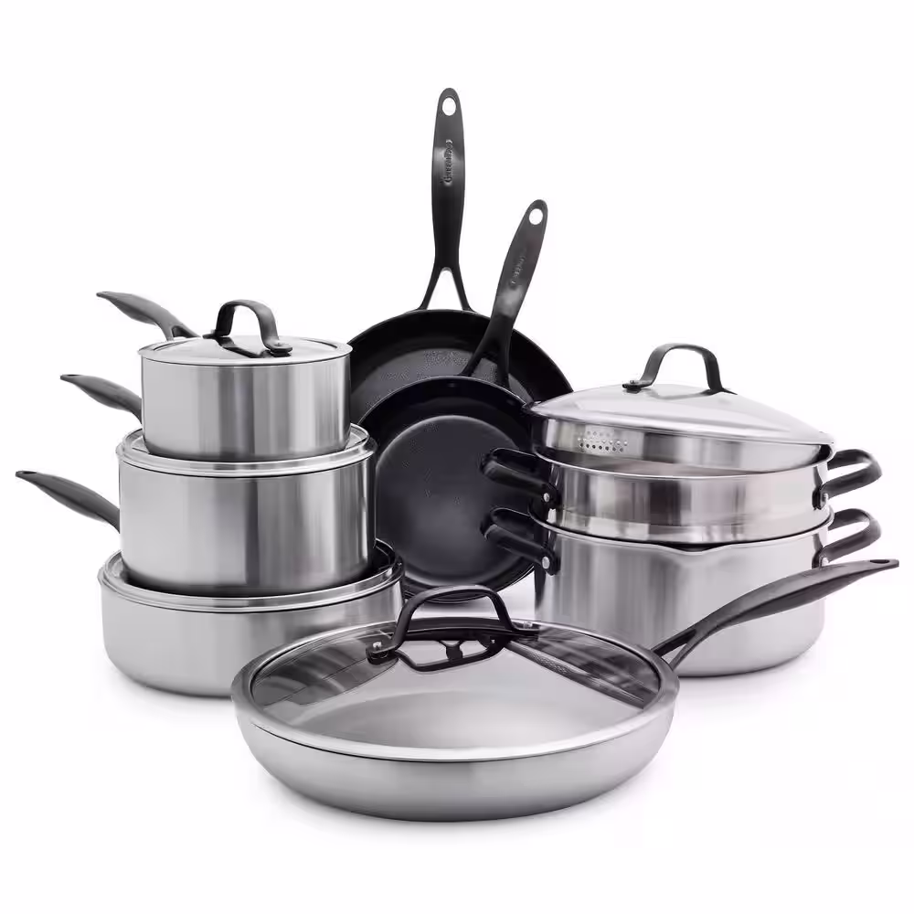 GreenPan Venice Pro Noir Tri-Ply Stainless Steel Healthy Ceramic Nonstick 13 Piece Cookware Pots and Pans Set