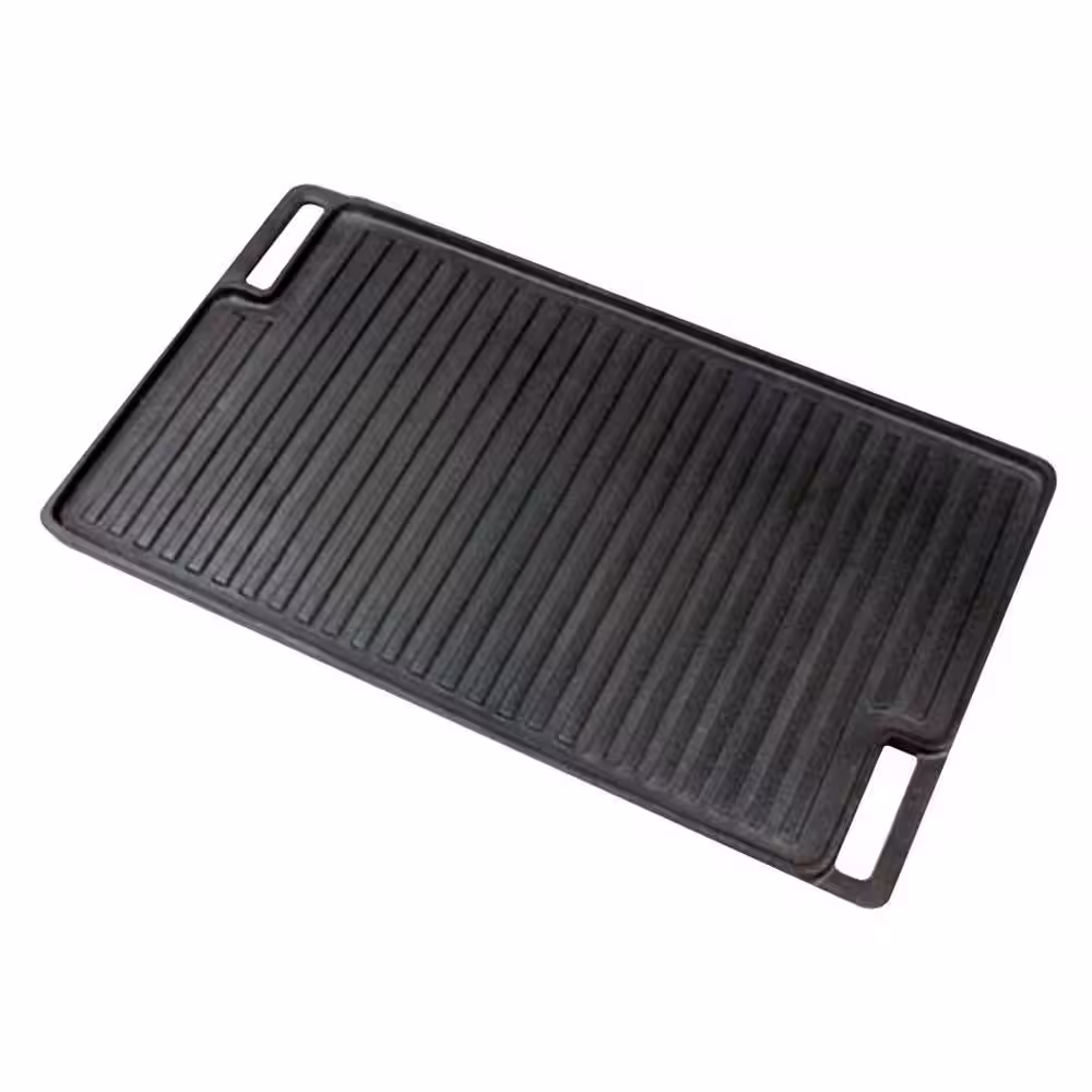 NutriChef 19.96 in. Kitchen Flat Grill Plate Pan Reversible Cast Iron Griddle Classic Flat Grill Pan Design with Scraper