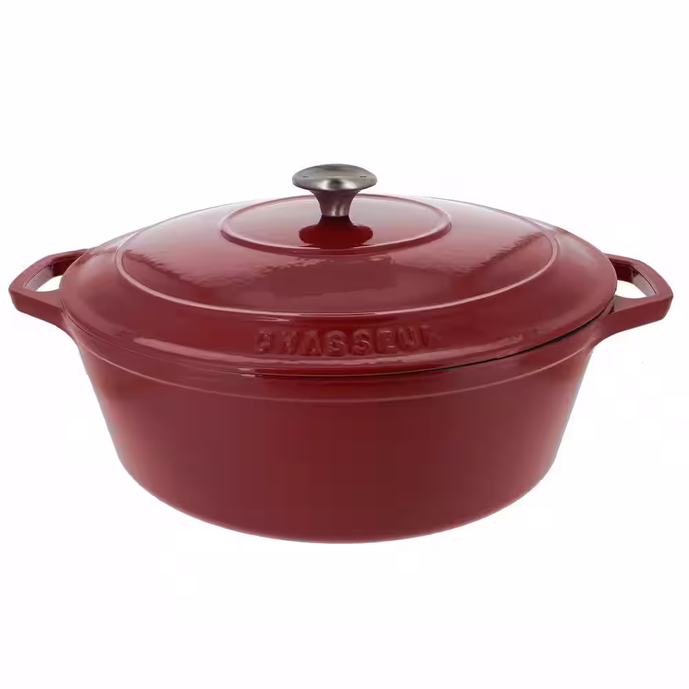 Chasseur French Enameled 7.25 qt. Oval Cast Iron Dutch Oven in Red with Lid