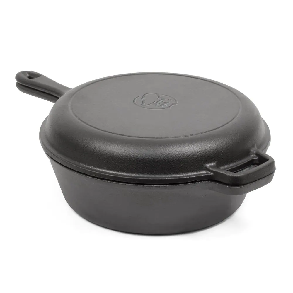 Commercial CHEF Pre-Seasoned 3 Qt. Cast Iron Dutch Oven with Skillet Lid