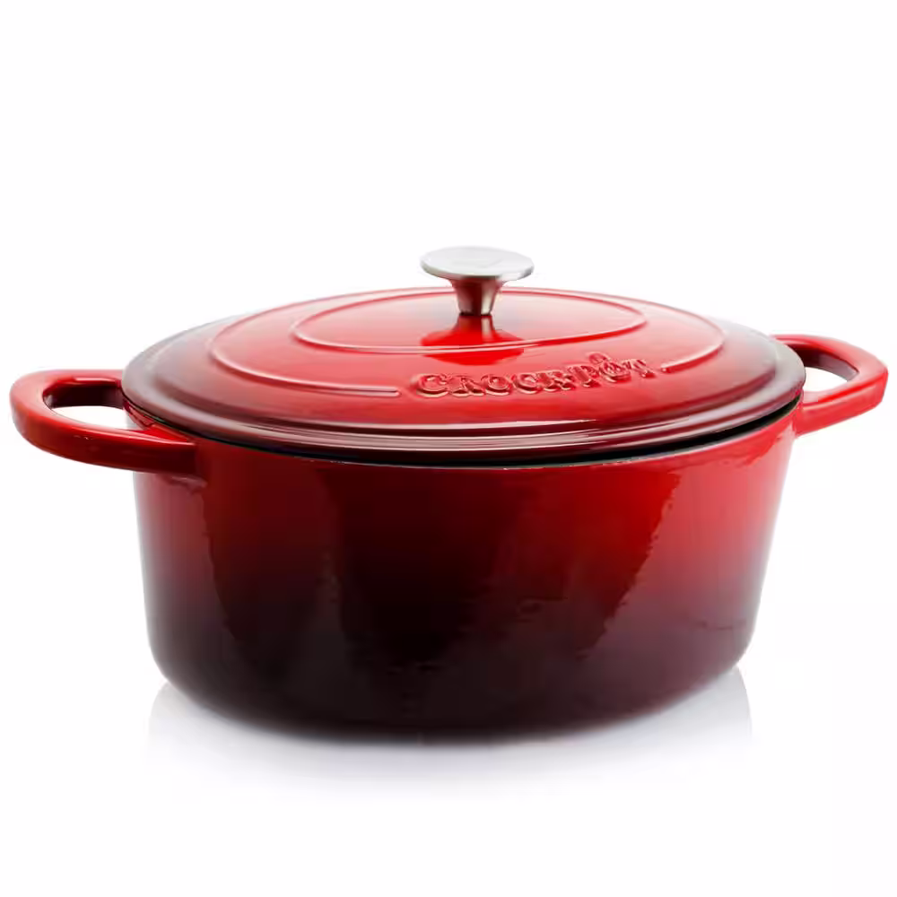 Crock-Pot Artisan 7 qt. Oval Cast Iron Nonstick Dutch Oven in Scarlet Red with Lid