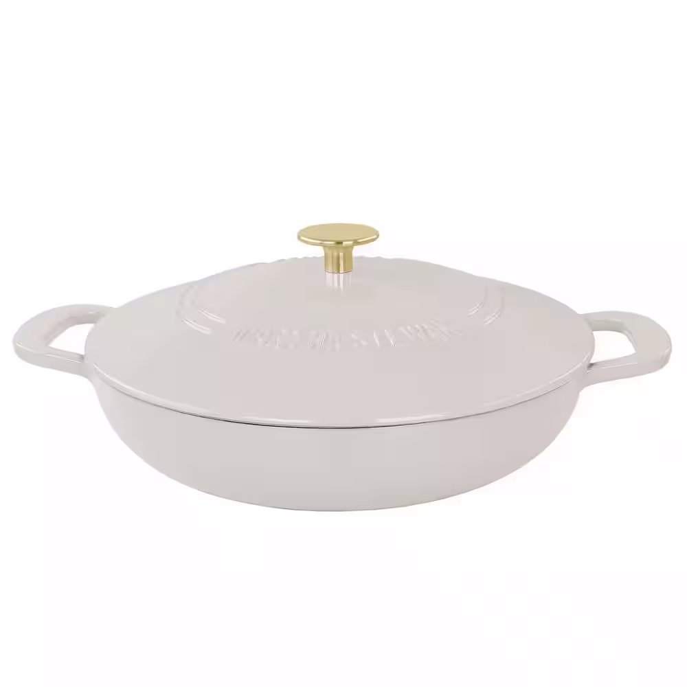 None 3.5 qt. Enameled Cast Iron Braiser in Linen with Self Basting Lid