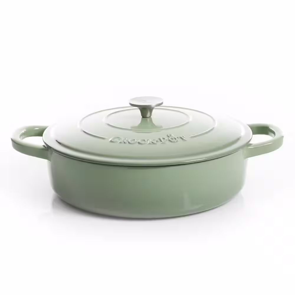 Crock-Pot Artisan 5 Qt. Round Pistachio Green Enameled Cast Iron Braiser Pan with Self Basting Lid