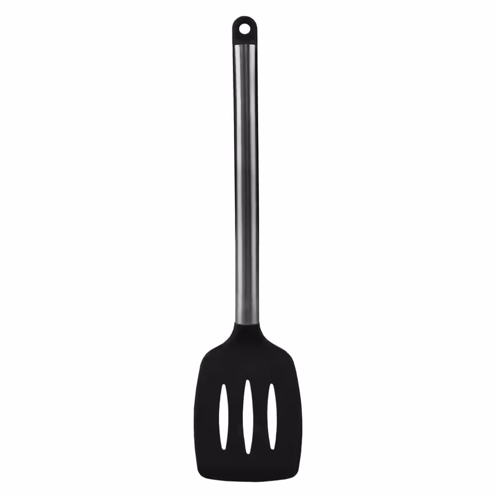 None Stainless Steel Silicone Black Slotted Spatula