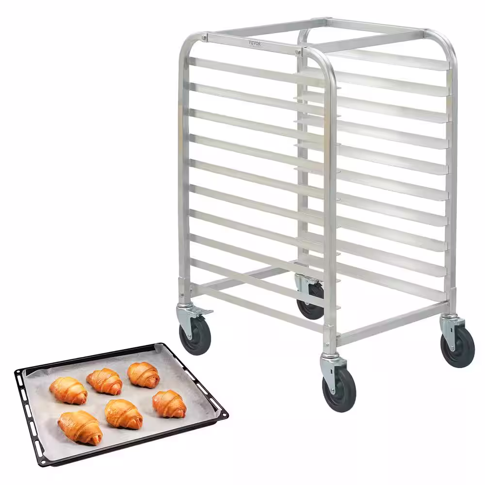 VEVOR Bun Pan Rack 10-Tier Commercial Bakery Racks with Brake Wheels 26 in. L x 20.3 in. W x 39 in. H Bread Baking Equipment