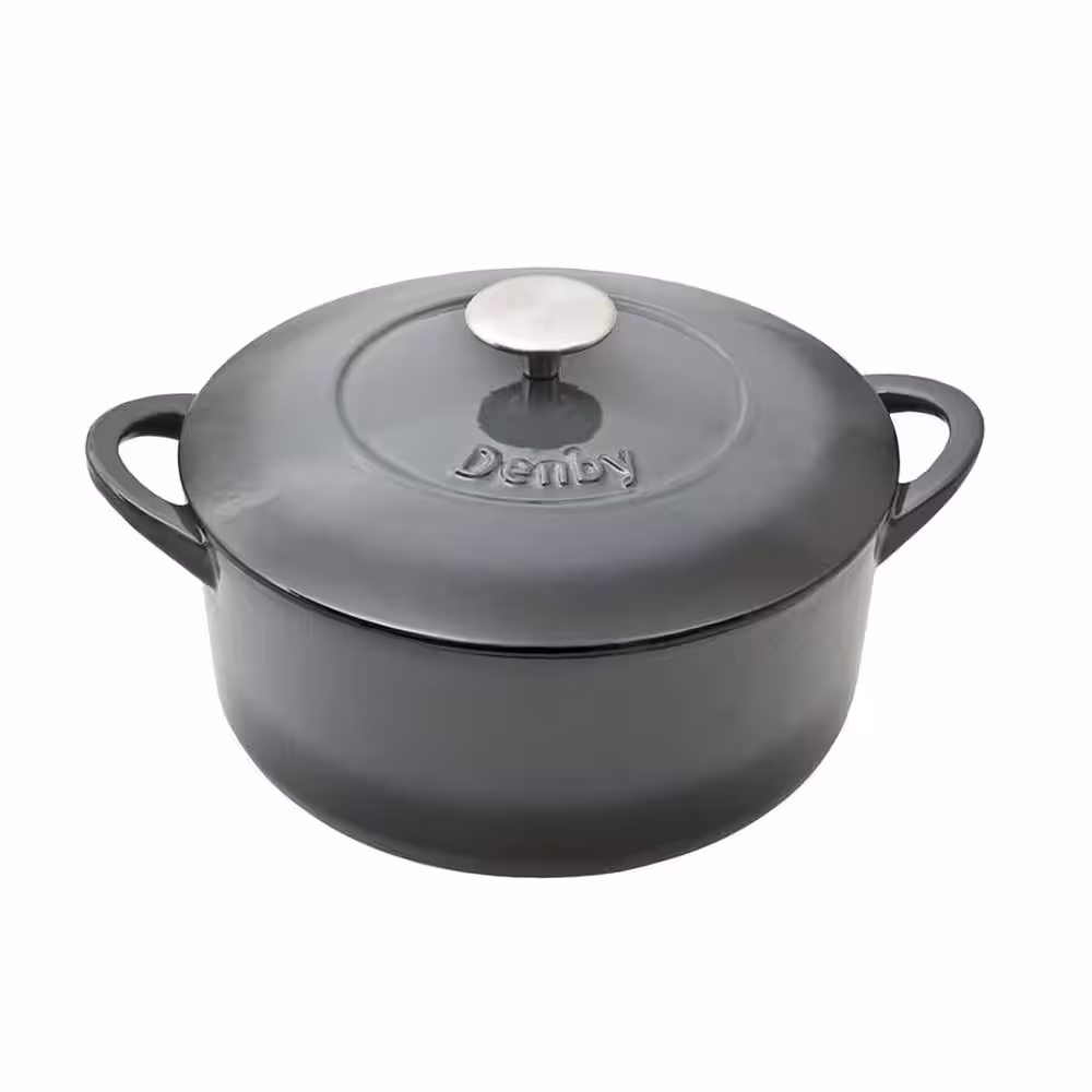 Denby Halo 4.28 qt. Round Cast Iron Casserole Dish with Lid