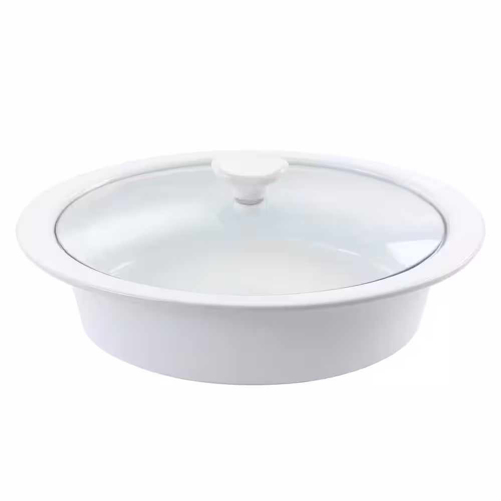 GIBSON ELITE Gracious Dining 1.9 qt. Stoneware Casserole in White with Glass Lid