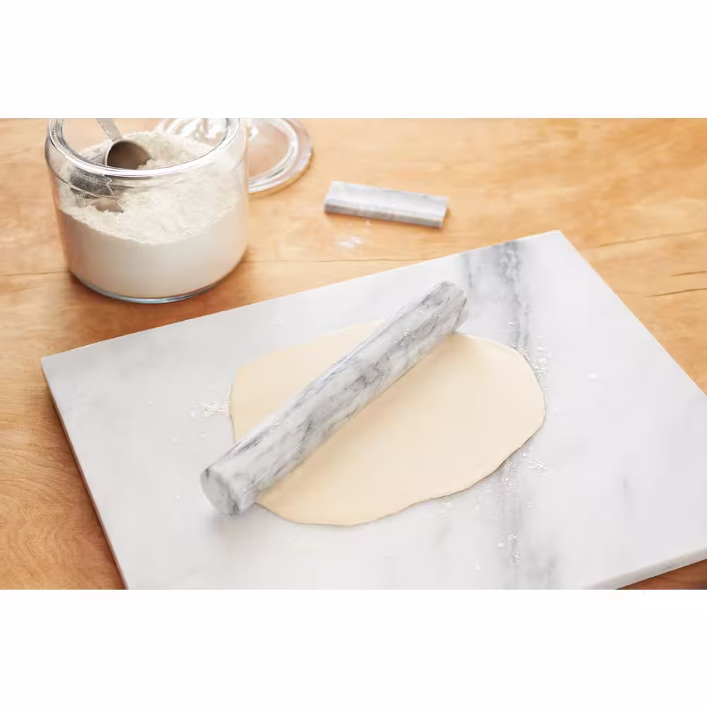 Fox Run White Marble Rolling Pin and Base with Aluminum Handles