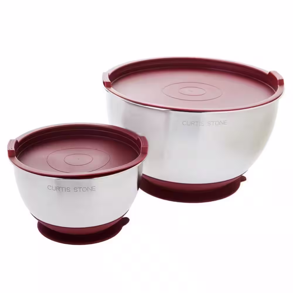None Stainless Steel Suctioning Mixing Bowl Set with Lids (Set of 2)