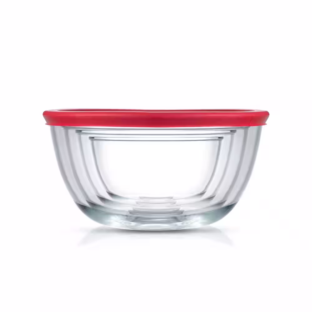 JoyJolt Joyful Red 4-Glass Mixing Bowls Set With Airtight Lids