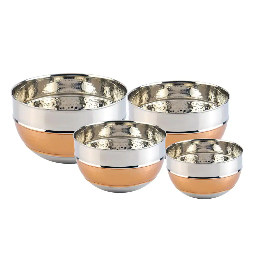 None 4-Piece Premium 2-Tone Stainless Steel Hammered Mixing Bowl Set