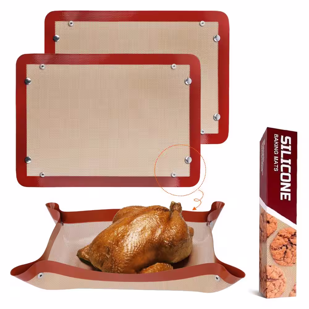 ALLINHOMIE 16.5in. x 11.6in. Non-Stick Silicone Reusable Roasting & Baking Mat Sheet Set with 4 Corner Buckles Pack of 2