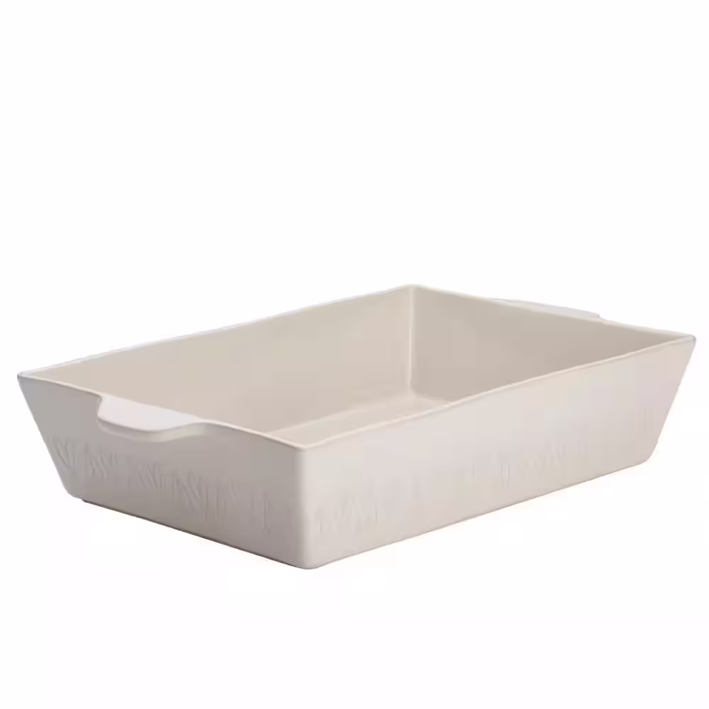 Ayesha Curry Home Collection 9 in. x 13 in. French Vanilla Ceramic Rectangular Baker