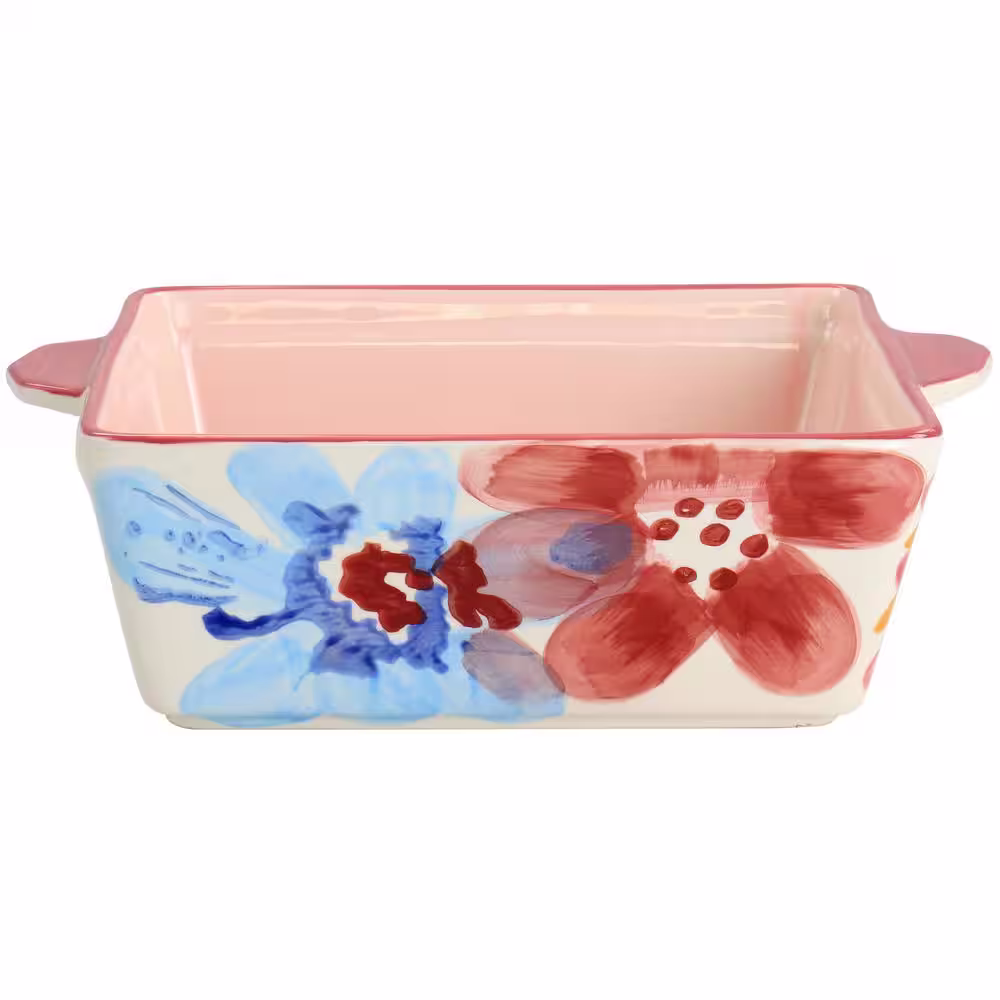 None Goji Blossom 2 qt. Square Stoneware Baker Pan in Pink