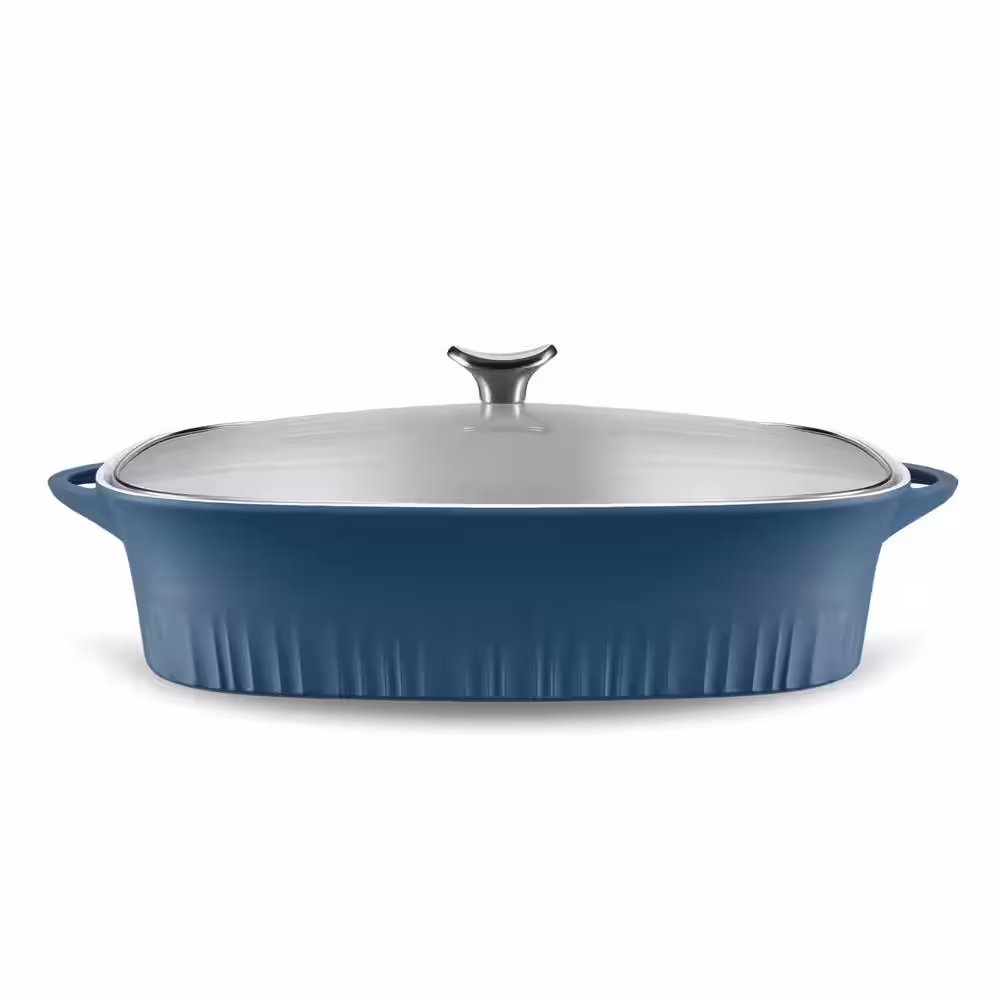 CorningWare 9 in. x 13 in. Blue Cast Aluminum Baker with Lid