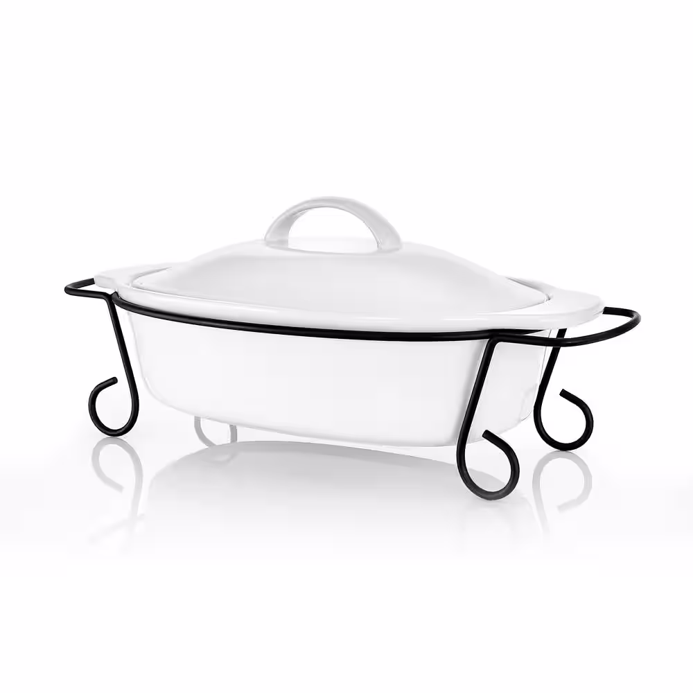 Gibson Home Gracious Dining Oval Stoneware Bakeware with Lid and Metal Rack