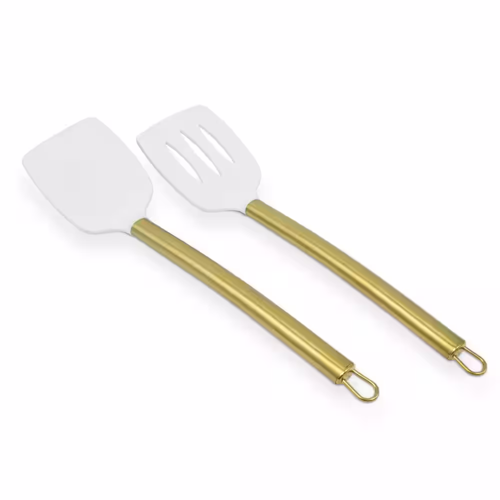 ExcelSteel 2 Pc 13.75" Silicone Gold Plated Turner Set w/White
