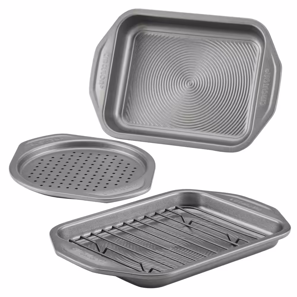 Circulon Total Bakeware Nonstick Toaster Oven and Personal Pizza Pan Baking Set, Gray, 4-Piece