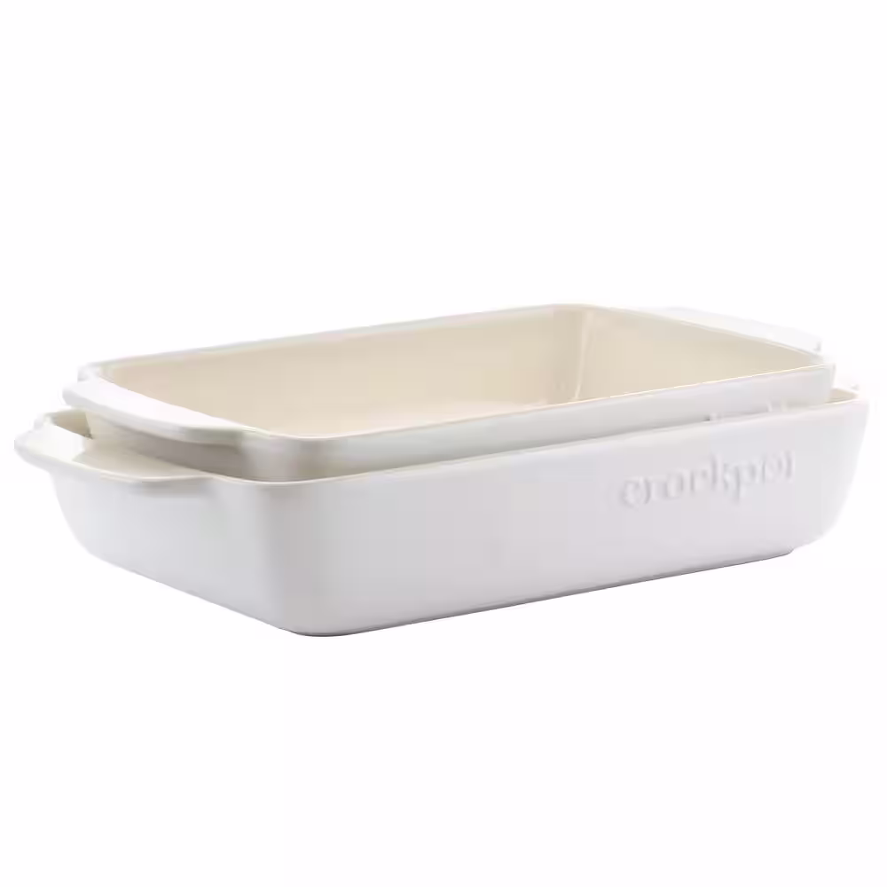 Crock-Pot Artisan 2-Piece 2.5 qt. and 3.5 qt. Rectangular Stoneware Bake Pan Set in Cream