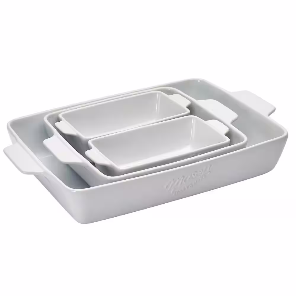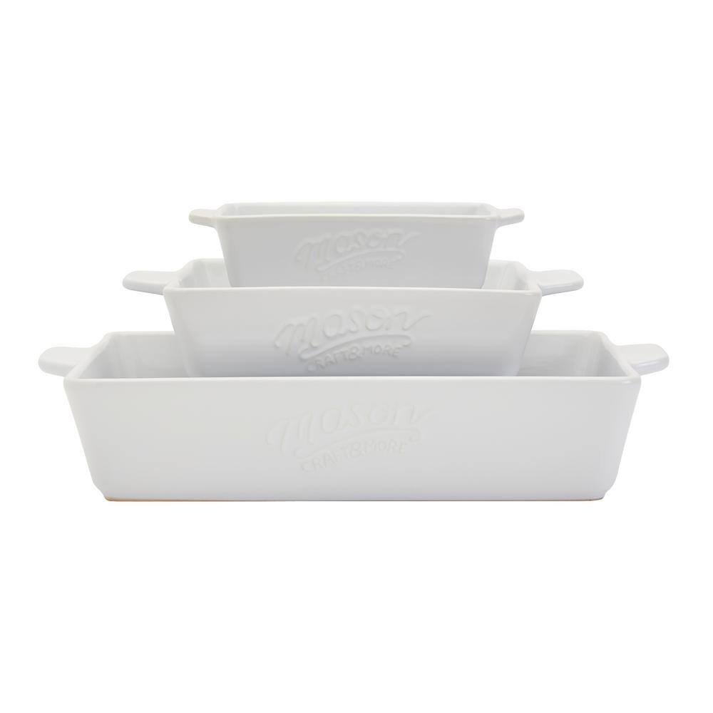 Mason Craft and More 3-Piece Rectangular Ceramic Baker Set with Handles
