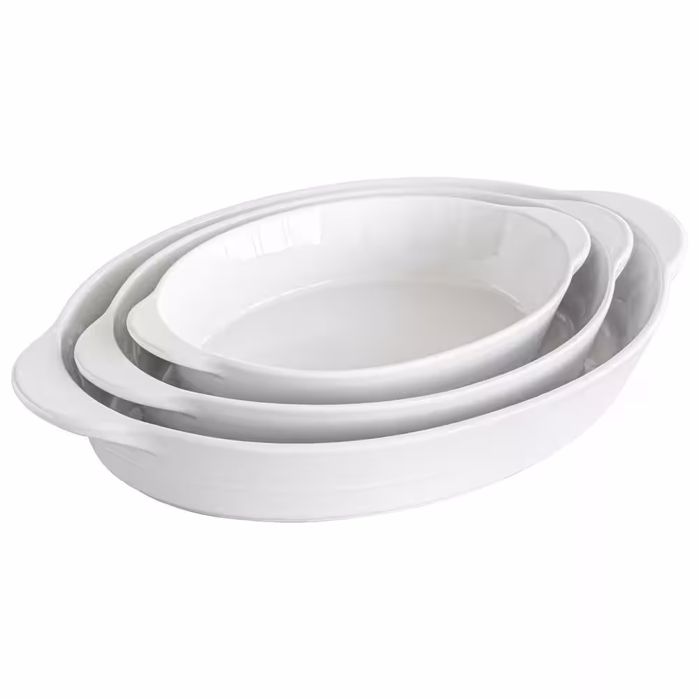 Over and Back 3-Piece Oval White Porcelain Bakeware set (set of 3)