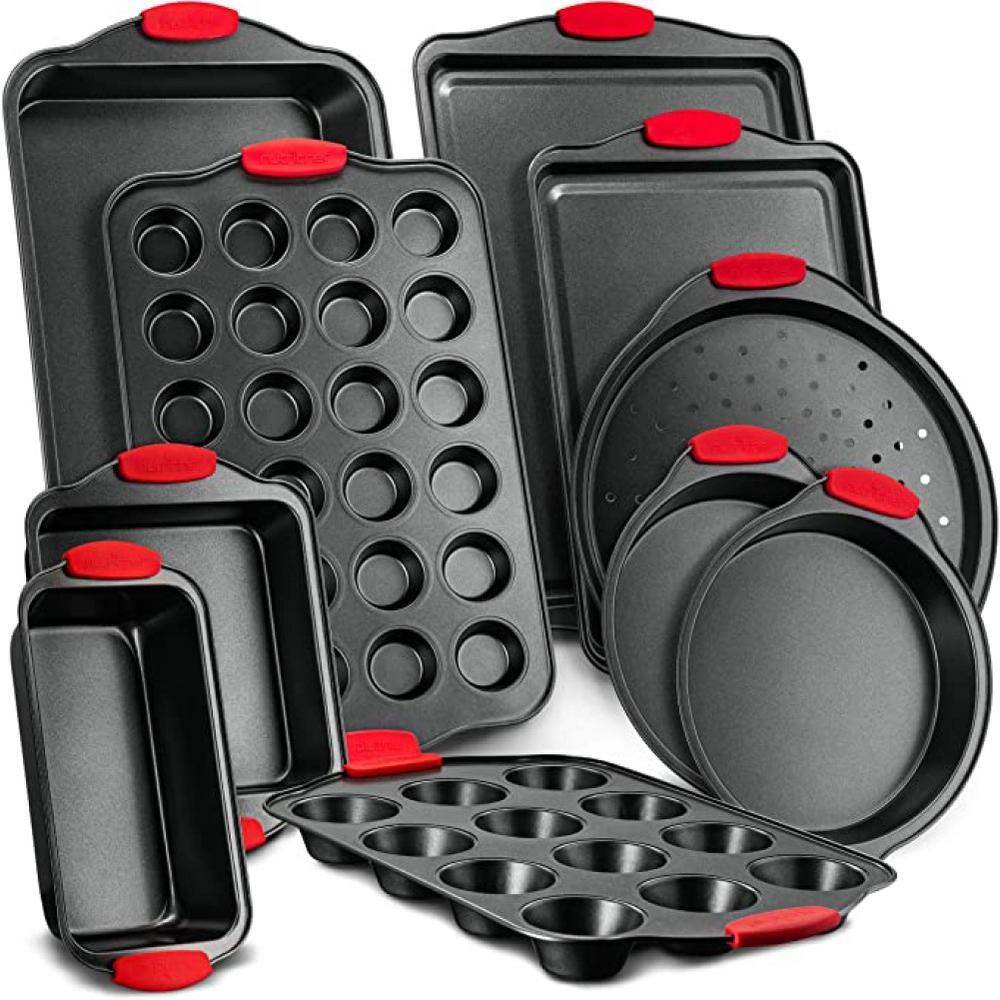 NutriChef Deluxe Non-Stick 10-Piece Carbon Steel Design with Red Silicone Handles Oven Bakeware Set