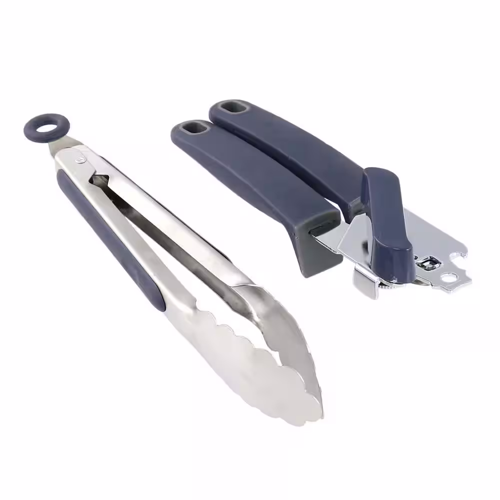 Oster Bluemarine 2-Piece Stainless Steel Can Opener and Tongs Set in Navy Blue