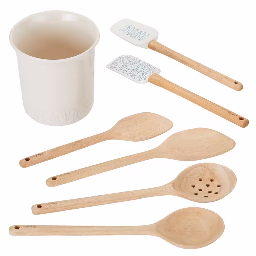 Ayesha Curry Ayesha Collection French Vanilla Kitchen Cooking Utensil Set with Ceramic Tool Crock