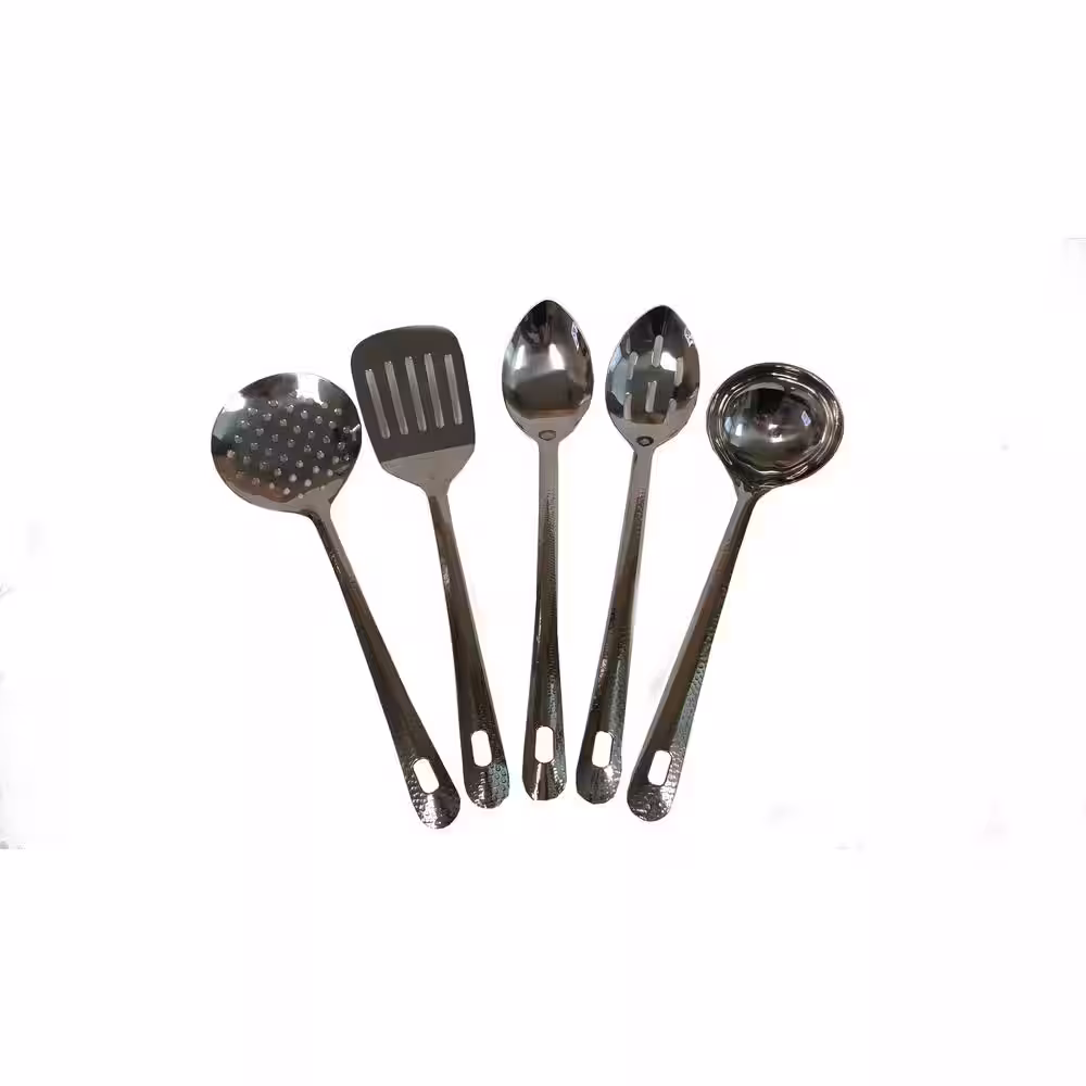 ExcelSteel Utensils Set of 5 with Hammered Handle
