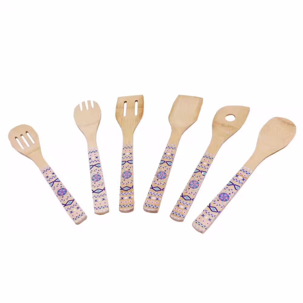 BergHOFF Patterned Bamboo 6-Piece Blue and Orange Utensil Set