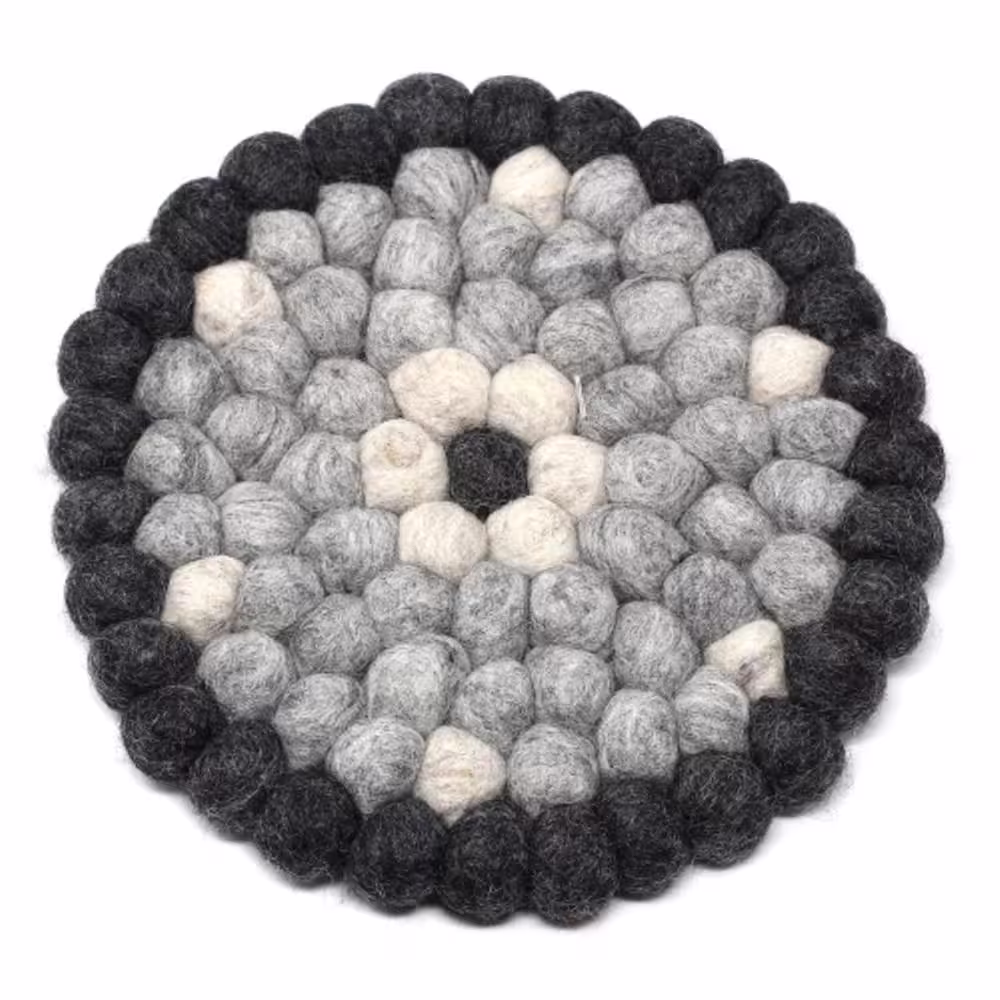 Global Craft Felt Ball Trivets: Round Flower Design, Black/Grey
