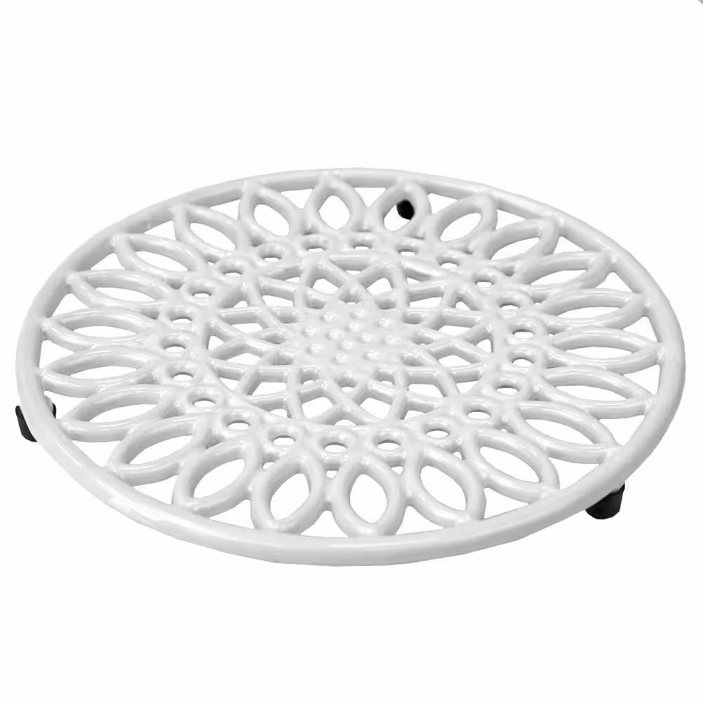 Home Basics Sunflower Heavy Weight Cast Iron Trivet, White