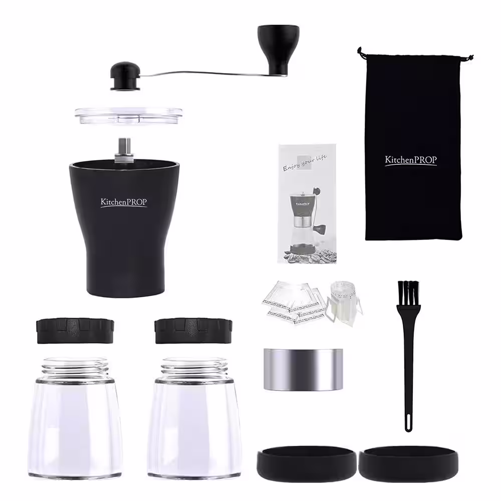 None Manual Coffee Grinder 14Pcs Set with Two 5.5 Oz Clear Glass Jars