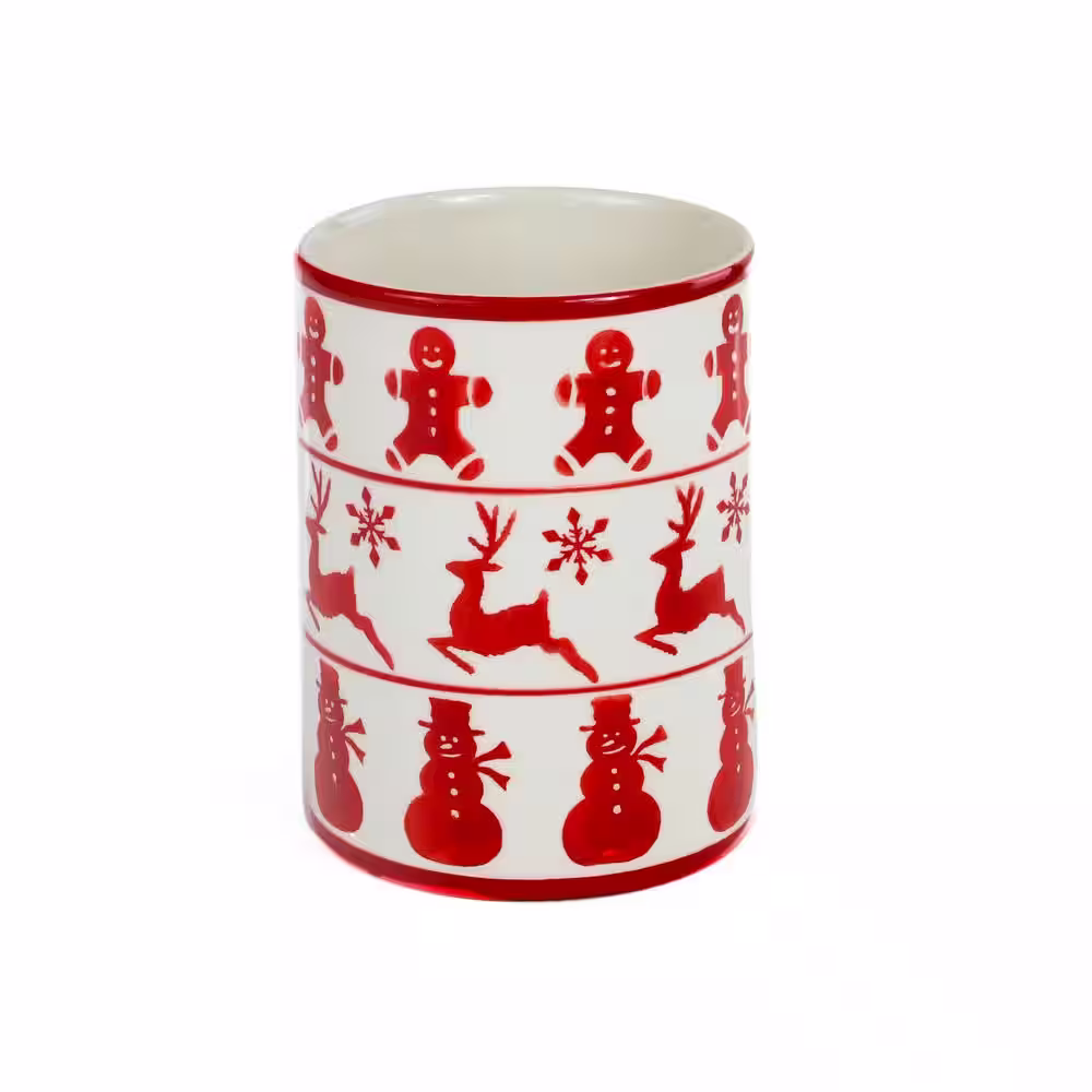 Euro Ceramica Winterfest Red/White Ceramic Utensil Holder