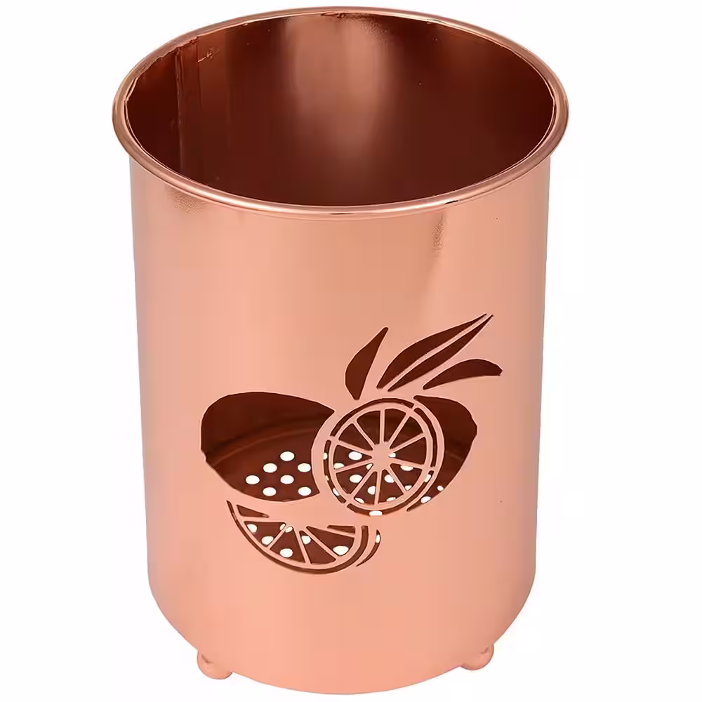 Creative Home Deluxe Copper Plated Metal Utensil Holder Kitchen Tool Crock with Laser Cut Lemon Motif