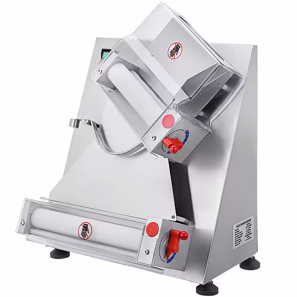 VEVOR Pizza Dough Roller Sheeter Max 12 in. Automatic Dough Roller Sheeter 370 Watt Stainless Steel Pizza Dough Roller