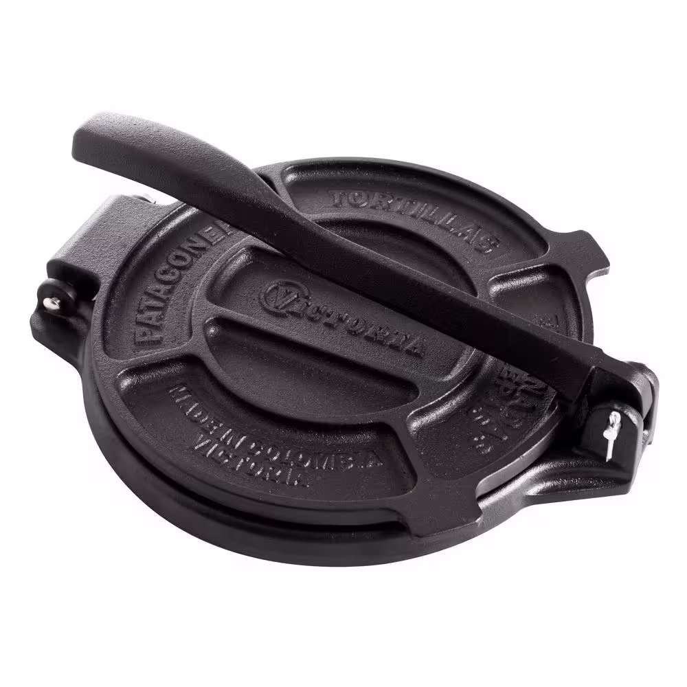 None 8 in. Black Cast Iron Tortilla Press and Pataconera Seasoned