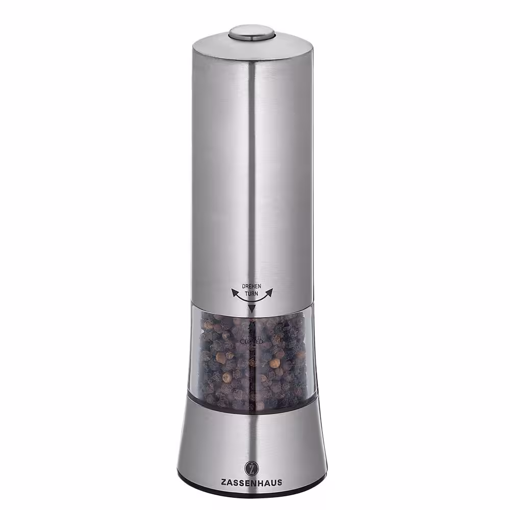 ZASSENHAUS 2.5 in. Dia. x 7 in. Acrylic "Gera" Electric Salt Mill
