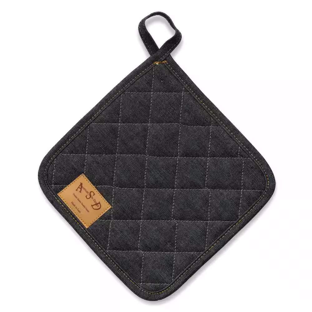 Art Style Design Living Vintage Draper Denim Potholder and Oven Mitt Set