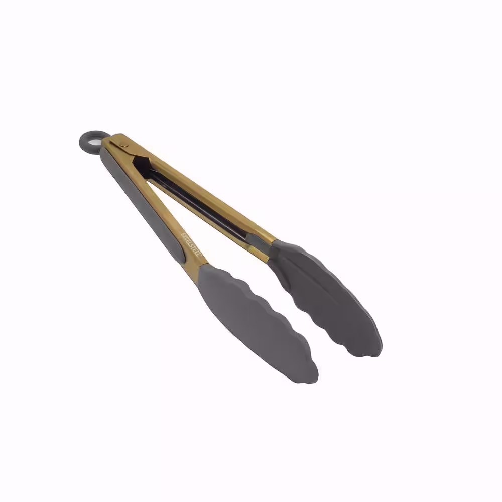 ExcelSteel 9 in. S/S Gold Plated Grey Silicone Tong W/Stay Cool Handle (Set of 2)
