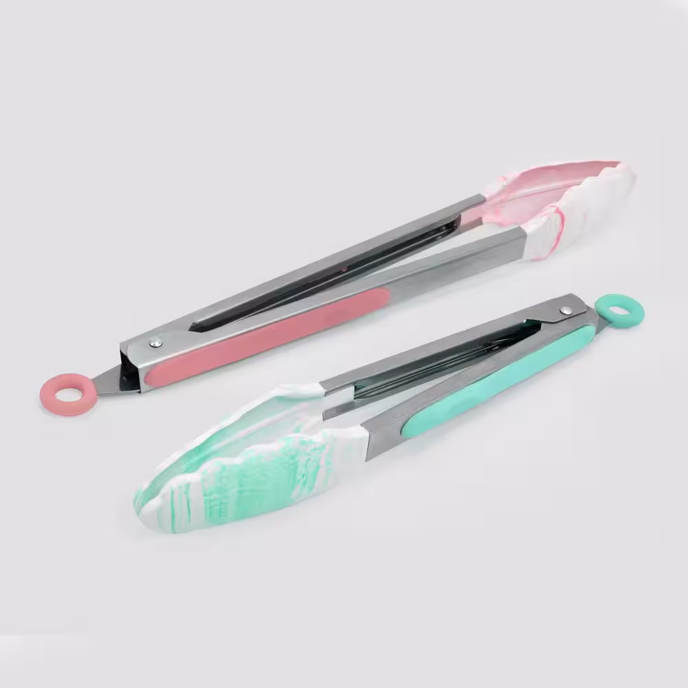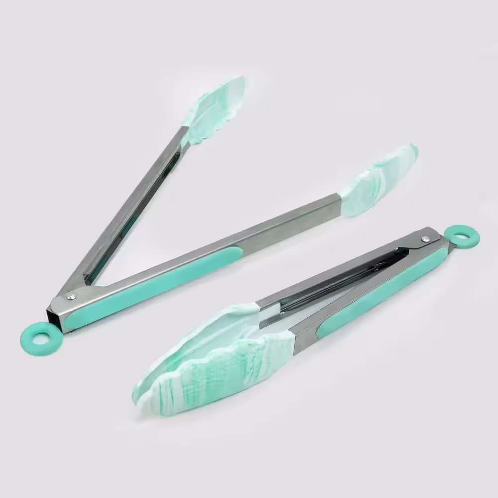 ExcelSteel 9 in. Stainless Steel Marble Teal Silicone Tong with Handle (Set of 2)