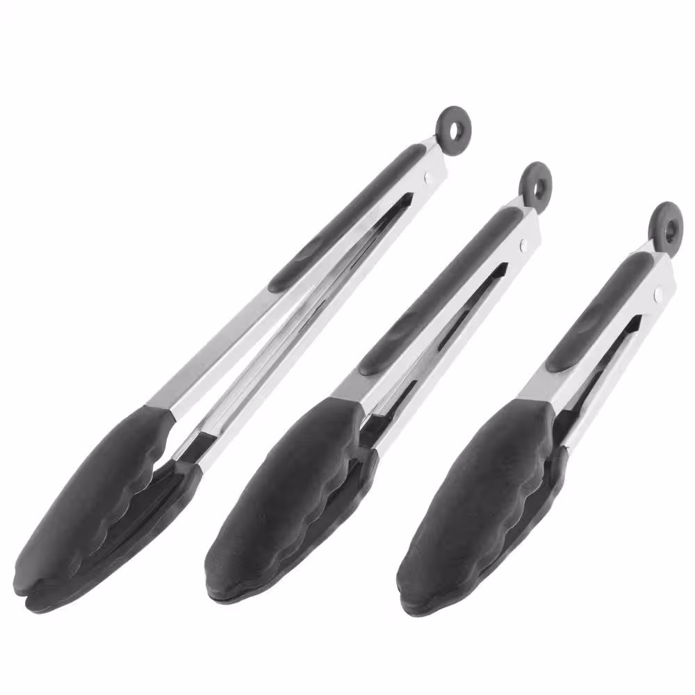 Classic Cuisine Stainless Steel with Silicone Tips Kitchen Tong (Set of 3)