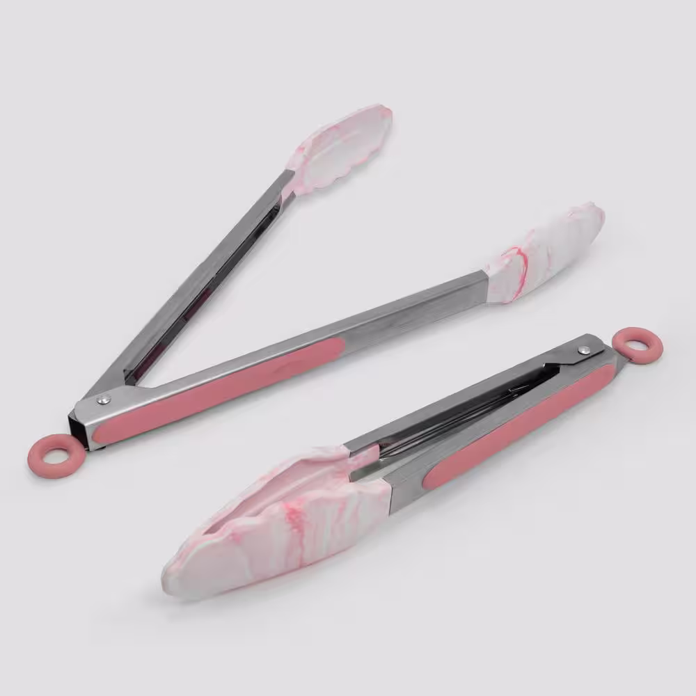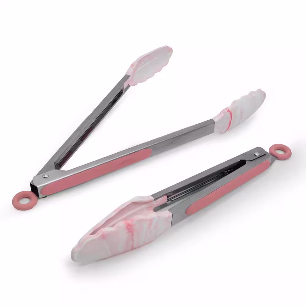 ExcelSteel 12 in. Stainless Steel Marble Pink Silicone Tong with Handle (Set of 2)