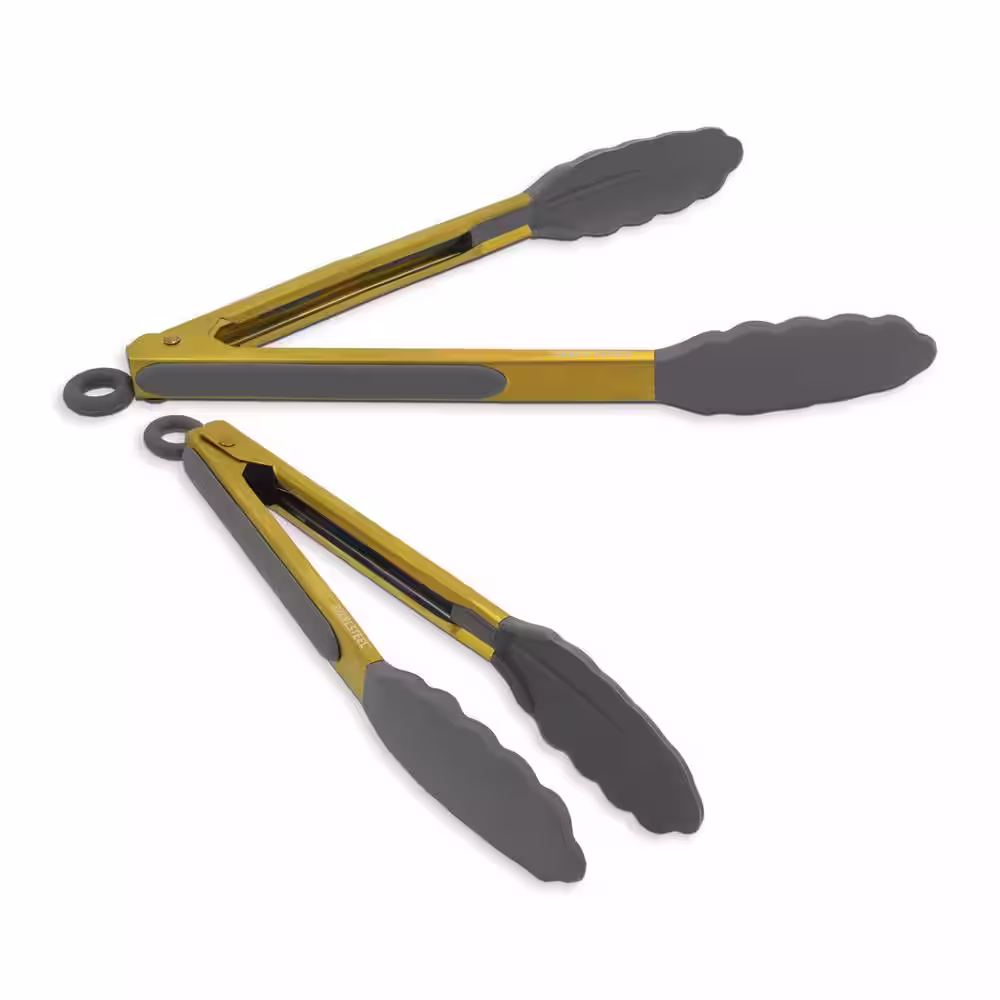 ExcelSteel 9 in. / 12 in. S/S Gold Plated Grey Silicone Tong W/Stay Cool Handle