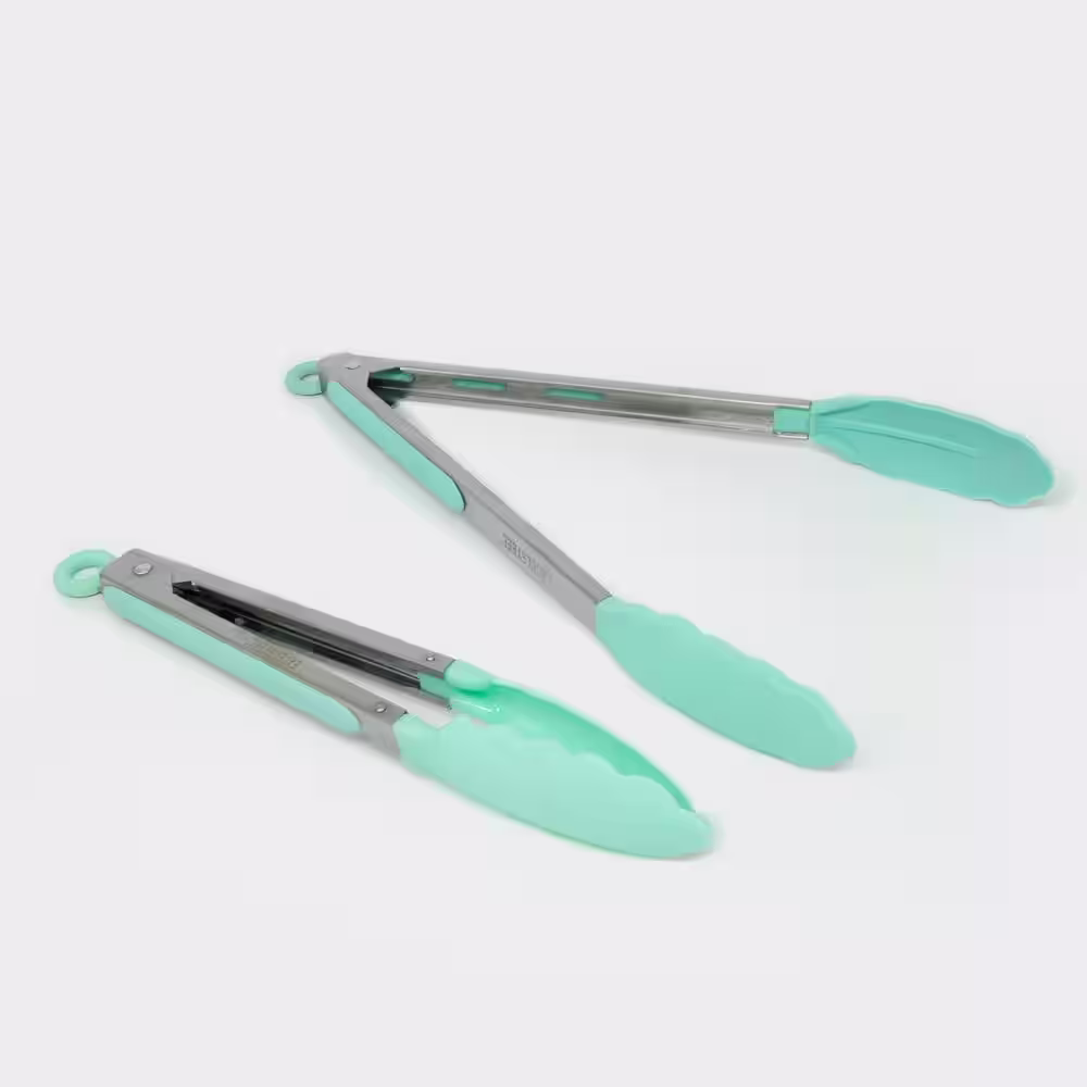 ExcelSteel Set of Two 12" Stainless Steel Teal Silicone Tong w/Stay Cool Handle